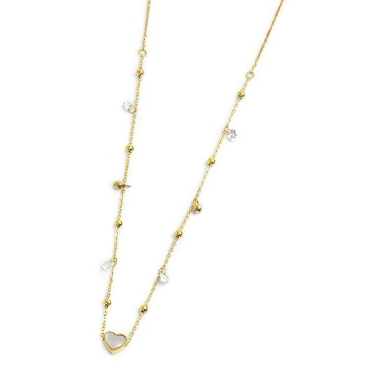 Bracciale cuore cristalli doppia catena con perle (BASE BIANCA o GIALLA o ROSA )