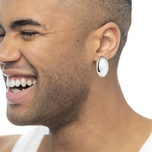 Orecchino a lobo bottone ovale 2,8cm (BIANCO)