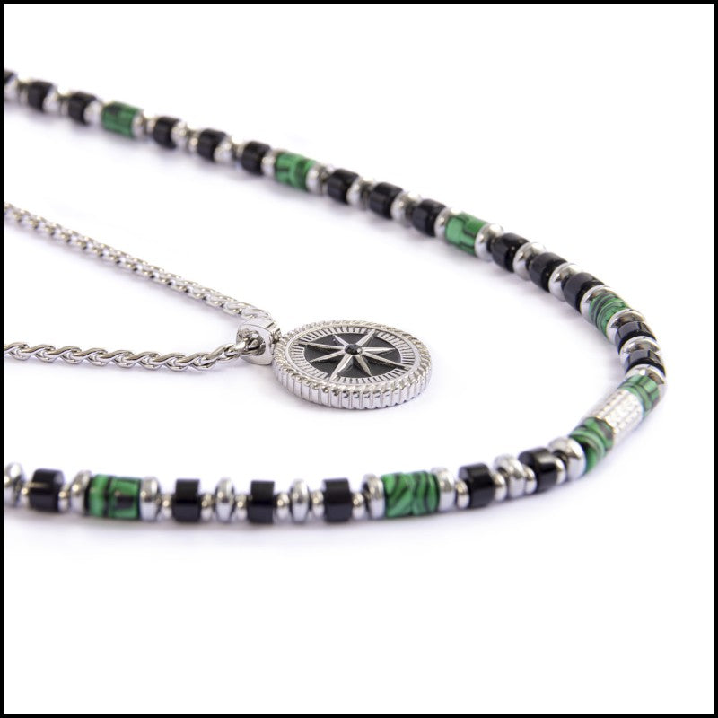 Collana rosa dei venti e collana rondelle in malachite