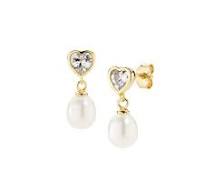 Orecchini Cuore con Perla e Zirconi Dorati