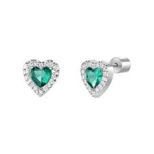 ORECCHINI DONNA IN ACCIAIO CON CUORI CON ZIRCONI VERDI E BIANCHI
