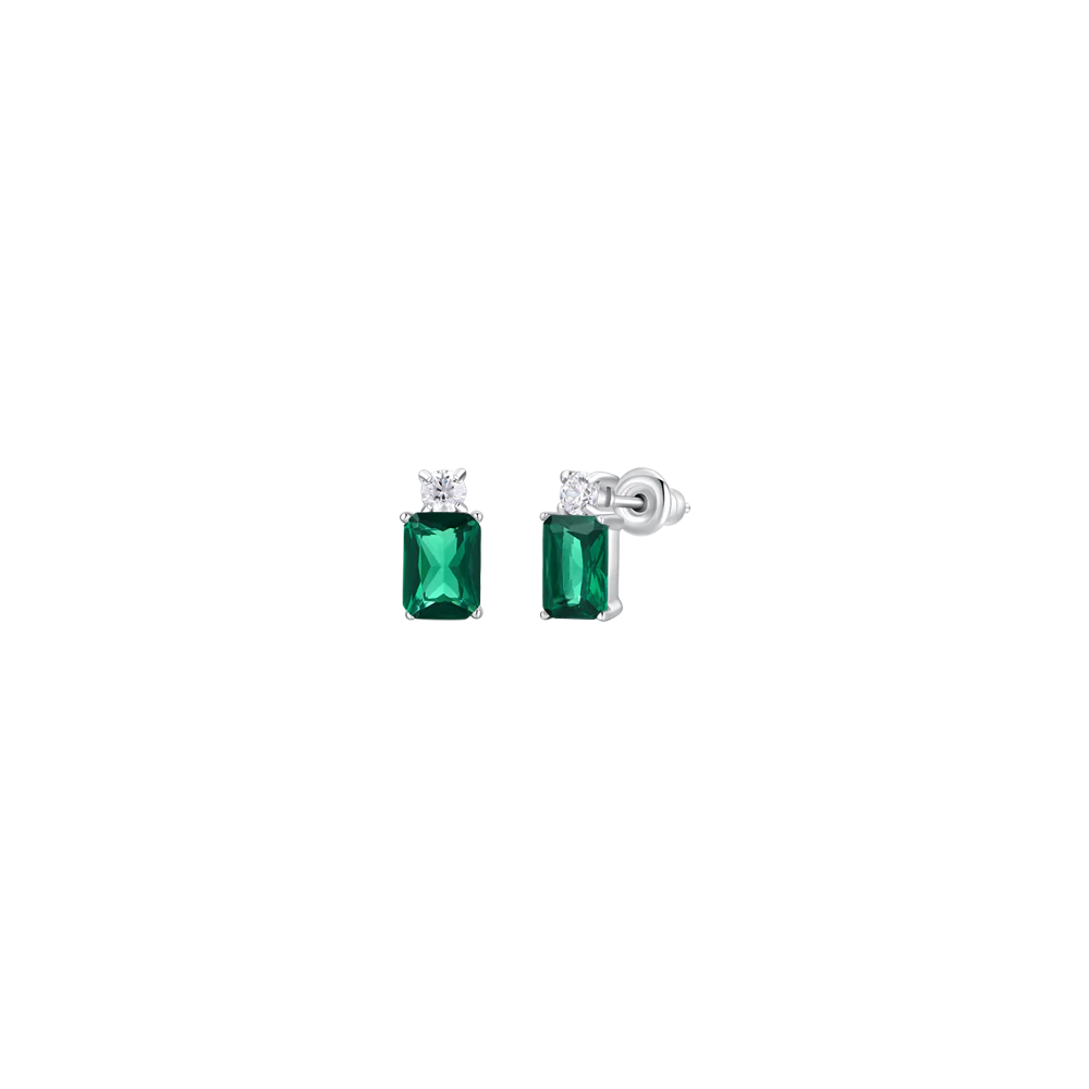 ORECCHINI DONNA IN ACCIAIO CON ZIRCONI VERDE E BIANCHI